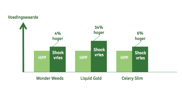 Wij hebben twee methoden om te conserveren getest: HPP en invriezen.
