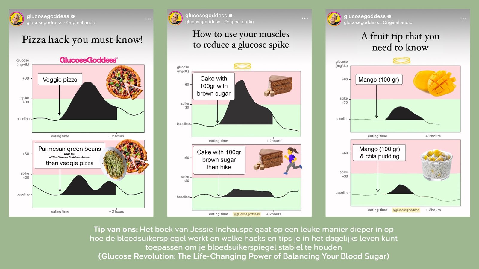 Soms is de volgorde van je ingrediënten of voeding niet aan te passen, denk maar eens aan een soep of curry. En heel soms kan het ook zijn dat je daar gewoon geen zin in hebt. Dan is er geen sprake van een toetje, maar gewoon van een stuk taart, omdat het kan. Voor deze gelegenheden tipt de @glucossegoddes in haar boek Glucose revolution het volgende: