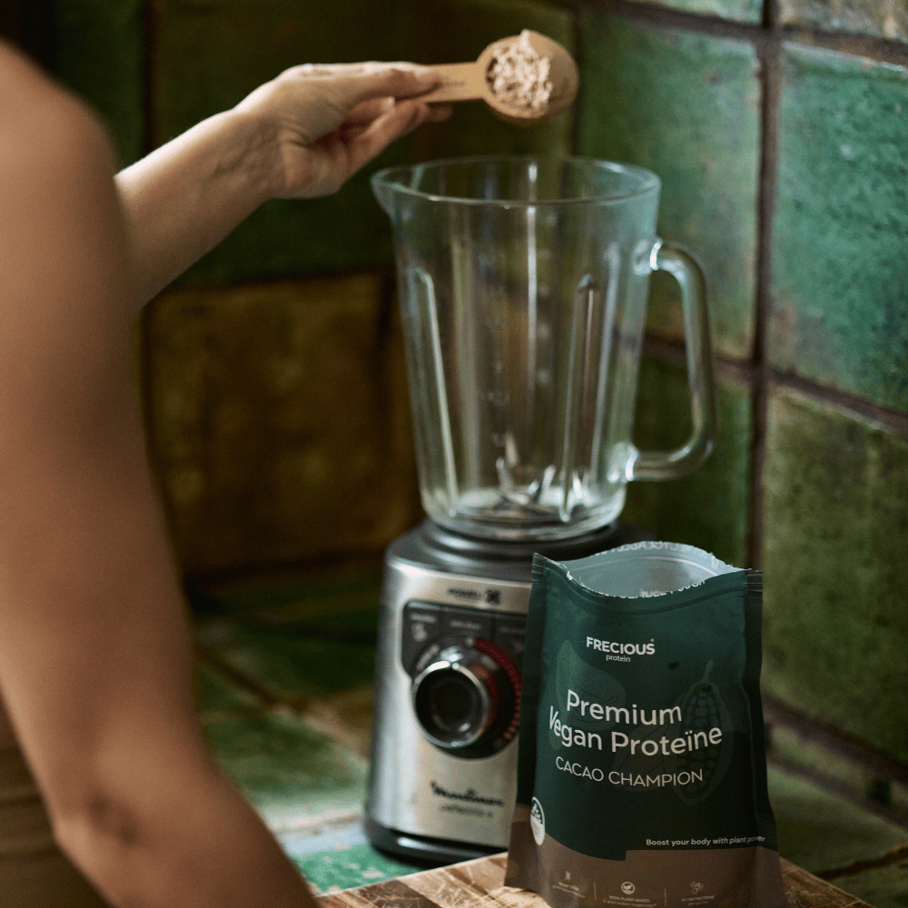 Ons hoogwaardige proteïnepoederlijn is uitgebreid met een nieuwe smaak: Cacao Champion! Deze vegan proteine is een exclusieve blend van hoogwaardige plantaardige bronnen. Het heeft een milde smaak en is hiermee goed te mixen in een smoothie, healthy pancakes of gewoon als sportshake.